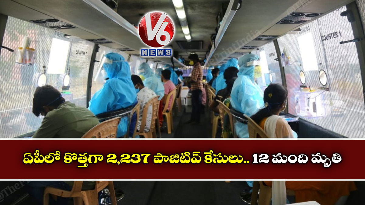 ఏపీలో గడిచిన 24 గంటల్లో కొత్తగా 2,237 పాజిటివ్ కేసులు నిర్ధారణ అయ్యాయి. దీంతో రాష్ట్రంలో మొత్తం కేసుల సంఖ్య 8,42,967కి చేరింది. ఇందులో 21,403 యాక్టివ్ కేసులు ఉండగా.. 8,14,773 మంది కరోనా నుంచి కోలుకుని డిశ్చార్జ్ అయ్యారు. గడిచిన 24 గంటల్లో కరోనాతో 12 మంది మృతి చెందారు. ఇప్పటివరకు కరోనాతో 6791 మంది మృతి చెందారు. ఇప్పటి వరకు 86.63 లక్షల కరోనా టెస్ట్లు చేశారు. కృష్ణా 3, చిత్తూరు, విశాఖ జిల్లాల్లో కరోనాతో ఇద్దరు చొప్పున మృతి చెందారు. తూర్పుగోదావరి, పశ్చిమగోదావరి, గుంటూరు, నెల్లూరు, శ్రీకాకుళం జిల్లాల్లో ఒక్కరు చొప్పున మృతి చెందారు.