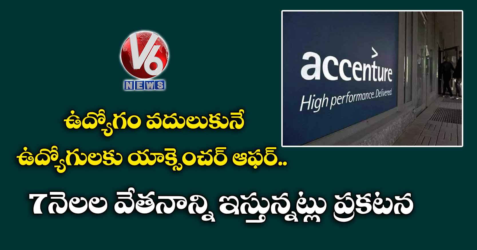 దీంతో యాక్సెంచర్ ఉద్యోగులు వదులుకునే వారికి భారీ ఆఫర్ ప్రకటించింది. తాజా లే-ఆఫ్స్ ప్రభావం పడిన వారికి ఏడు నెలల వేతనం అందిస్తోంది. ఇందులో మూడు నెలల కాలం నోటీస్ పీరియడ్ కాగా, మరో నాలుగు నెలలు అదనంగా చెల్లించనున్నట్లు ఇండియాటైమ్స్ కథనాన్ని ప్రముఖంగా ప్రచురించింది.