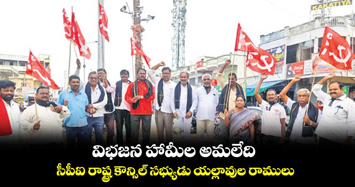 హుజూర్ నగర్, వెలుగు: విభజన చట్టంలో ఉన్న హామీలు అమలు చేయకుండా ప్రధాని మోడీ ఎన్ని సభలు పెట్టి, ఎన్ని హామీలు ఇచ్చిన ప్రజలు నమ్మే పరిస్థితి లేదని సీపీఐ రాష్ట్ర కౌన్సిల్ సభ్యుడు యల్లావుల రాములు విమర్శించారు. శనివారం వరంగల్లో నరేంద్ర మోడీ పర్యటనను నిరసిస్తూ ఇందిరా సెంటర్లో సీపీఐ ఆధ్వర్యంలో నల్ల కండువాలు, బ్యాడ్జీలను ధరించి నిరసన తెలిపారు. ఈ సందర్భంగా వారు మాట్లాడుతూ ప్రధానికి విభజన హామీలు అమలు చేయకుండా తెలంగాణలో పర్యటించే అర్హత లేదన్నారు.