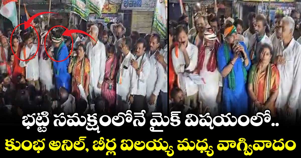 కార్నర్ మీటింగ్ లో సభాధ్యక్షుడిగా టీపీసీసీ ప్రధాన కార్యదర్శి, ఆలేరు నియోజకవర్గ కాంగ్రెస్ ఇన్ చార్జ్ బీర్ల ఐలయ్య మాట్లాడుతుండగా... తాను మాట్లాడుతానంటూ జిల్లా అధ్యక్షుడు కుంభ అనిల్ మైక్ తీసుకోబోయాడు. దీంతో రియాక్ట్ అయిన ఐలయ్య.. తాను సభాధ్యక్షుడినంటూ మైక్ ఇవ్వడానికి ససేమిరా అన్నారు. దీంతో కాసేపు ఇద్దరి మధ్య మల్లు భట్టి విక్రమార్క సమక్షంలోనే వాగ్వివాదం చోటు చేసుకుంది. ఇదంతా గమనించిన కాంగ్రెస్ కార్యకర్తలు గందరగోళానికి గురయ్యారు.