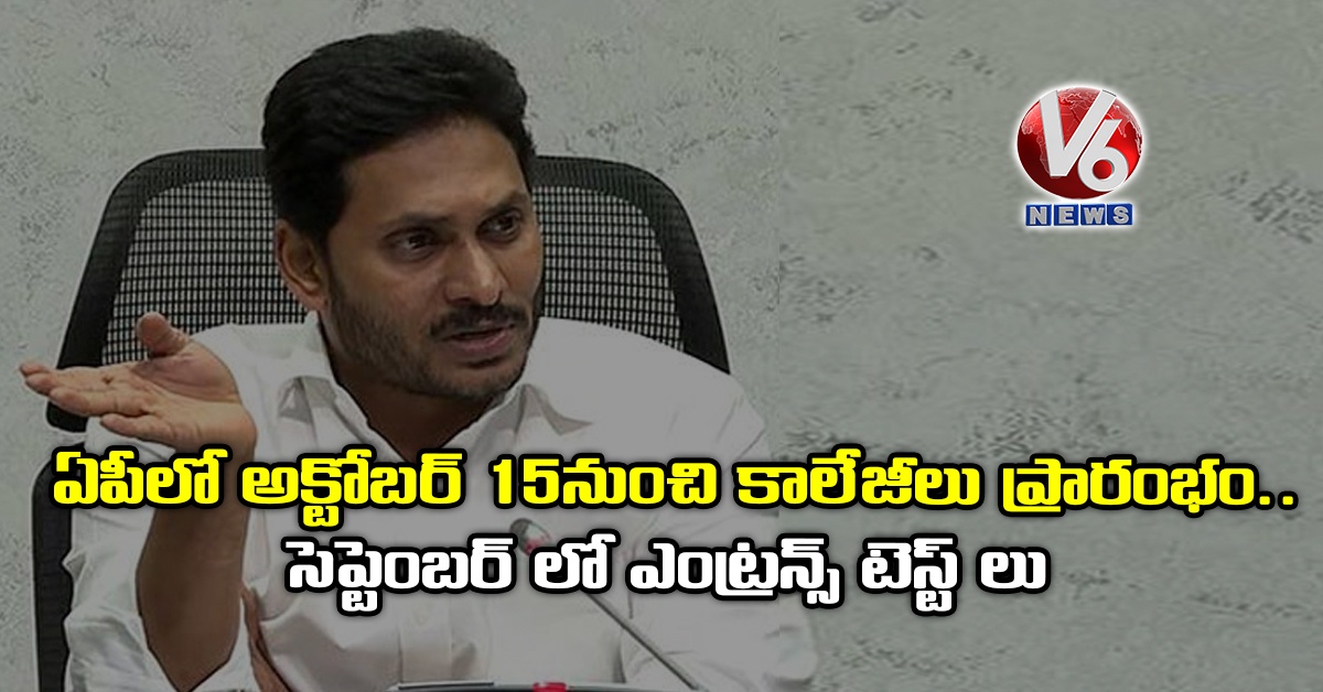 ఏపీ సీఎం జగన్ రాష్ట్రంలో ఉన్నత విద్యా విధానంపై ఉన్నతాధికారులతో సమీక్ష నిర్వహించారు. ఈ సందర్భంగా పలు కీలక నిర్ణయాలు తీసుకున్నారు. అక్టోబరు 15న కాలేజీలు తెరవాలని, అందుకు సంబంధించిన సెట్ ల ఎంట్రన్స్ టెస్ట్ లను సెప్టెంబరులో జరిపేందుకు సన్నద్ధం కావాలని సూచించారు.
