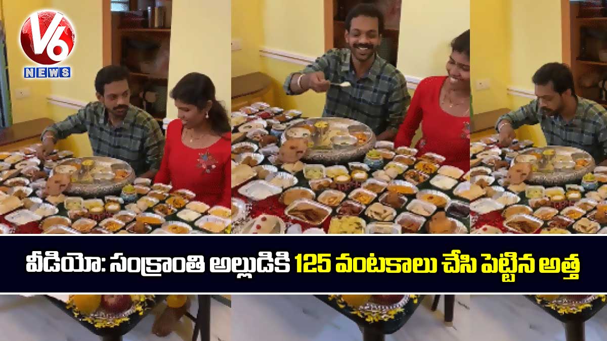 ఆంధ్రప్రదేశ్లో సంక్రాంతి పండుగను ఘనంగా జరుపుకుంటారు. సంక్రాంతి పండుగకు కూతురితో పాటు కొత్త అల్లుడు ఇంటికి రావడం.. అతనికి అత్తింటి వారు మర్యాదలు చేయడం సహజం. అయితే ఈ మధ్యే పెళ్లై పండగకు ఇంటికి వచ్చిన కొత్త అల్లుడికి అత్తింటి వారు చేసిన మర్యాదలు మాములుగా లేవు. సంక్రాంతి పండుగకు ఇంటికి వచ్చిన కొత్త అల్లుడుకి అత్తింటి వారు ఏకంగా 125 రకాల వంటలు వడ్డించారు. ఈ సంఘటన పశ్చిమగోదావరి జిల్లాలోని భీమవరంలో జరిగింది. అయితే ఆ 125 రకాల వంటకాల్లో అన్ని రుచులు ఉండేలా చూసుకున్నారు అత్తింటివారు. స్వీట్స్, హాట్, పండ్లు, బర్గర్లు, కూరగాయల వంటలు, రకారకాల రైస్లతో.. మొత్తం డైనింగ్ టేబుల్ నింపేశారు. ఆ టేబుల్ ముందు.. అల్లుడు, కూతురు కూర్చుని వంటకాలు రుచి చూస్తున్న వీడియో సోషల్ మీడియాలో వైరల్ అవుతోంది.