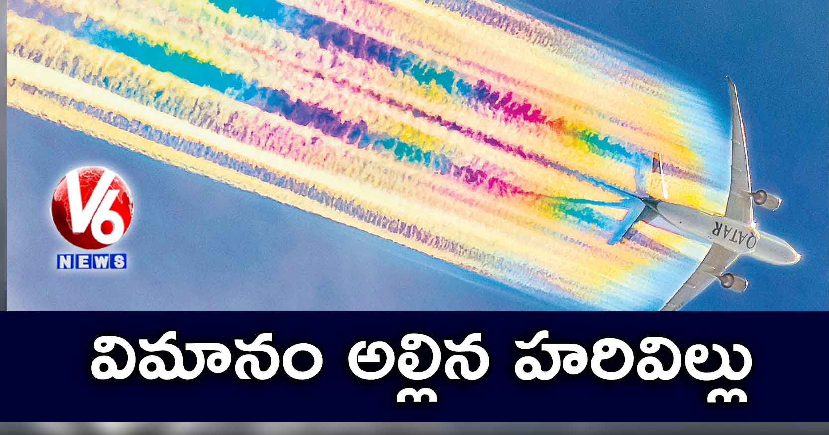 వర్షం వచ్చి వెలిసినప్పుడు ఆకాశం ఏడు రంగుల వంకీని వయ్యారంగా పెడతది. దాన్నే మనం హరివిల్లు అలియాస్ ఇంద్రధనుస్సు అంటాం. ఇంగ్లిష్లో అయితే రెయిన్బో అంటాం. పేరు ఏదైతేనేం, అదే ఆకాశంలో ఓ విమానం హరివిల్లును అల్లితే ఎట్లుంటది? ఇదిగో ఈ ఫొటోలో చూపించినట్టు ఉంటుంది. అవును, ఇది నిజమే. విమానం వెళుతున్నప్పుడు దాని వెనకాల వచ్చిన ఇంద్ర ధనుస్సిది. ఆస్ట్రేలియాలోని బ్రిస్బేన్కు చెందిన మైకేల్ మార్స్టన్ అనే ఫొటోగ్రాఫర్ ఈ హరివిల్లు విమానాన్ని తన కెమెరాలో పట్టేశాడు.