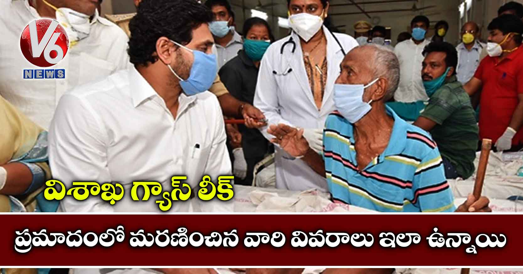 కాలువలోపడిఇద్దరు, ఇంటిపైనుంచిపడి మరొకరి మృతి గ్యాస్లీకైన ఘటనలో 11 మంది మృతి చెందినట్లు ఎన్డీఆర్ఎఫ్ డీజీ ఎస్ఎన్ ప్రధాన్ వెల్లడించారు. ఇందులో ఇద్దరు చిన్నారులు, ఒక ఎంబీబీఎస్ స్టూడెంట్ కూడా ఉన్నారు. మృతులను కుందన్ శ్రేయ (6), ఎన్. గ్రీష్మ (9), చంద్రమౌళి (19), నారాయణమ్మ (35); అప్పల నరసమ్మ (45), గంగరాజు (48), మేకా కృష్ణ మూర్తి (73), రత్నాల గంగాధర్ (64), గంగాధర్తో పాటు మరో ఇద్దరిని గుర్తించారు. చంద్రమౌళి అనే మృతుడు ఆంధ్రా మెడికల్ కాలేజీలో ఎంబీబీఎస్ ఫస్ట్ ఇయర్ చదువుతున్నారు. మృతుల్లో ఒకరుగ్యాస్ పీల్చిన తర్వాత కండ్ల మంటల కారణంగా అదుపుతప్పి బావిలో పడి చనిపోయారు. మరో ఇద్దరు కాలువలో పడి, మరొకరు బిల్డింగ్ పైనుంచి పడి చనిపోయారు. ఈ గ్యాస్ ప్రభావానికి గురైన 200 మందికి పైగా వేర్వేరు హాస్పిటల్స్లో ట్రీట్మెంట్ తీసుకుంటున్నారని, వీరిలో సుమారు 30 మంది పరిస్థితి విషమంగా ఉందని ఎన్డీఆర్ఎఫ్ డీజీ ఎస్ఎన్ ప్రధాన్ చెప్పారు. 80 మందికి పైగా వెంటిలేటర్లపై ఉన్నారని పేర్కొన్నారు.