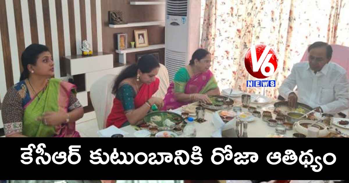 తెలంగాణ సీఎం కేసీఆర్ కు కుటుంబం ఏపీఐఐసీ ఛైర్పర్సన్, నగరి ఎమ్మెల్యే ఆర్కే రోజా నివాసానికి వెళ్లారు. అక్కడ వారు భోజనాలు చేశారు. రోజా స్వయంగా కేసీఆర్ కుటుంబ సభ్యలకు వడ్డించారు. భోజనానంతరం..వారు తిరుమలకు బయలుదేరి వెళ్లారు.