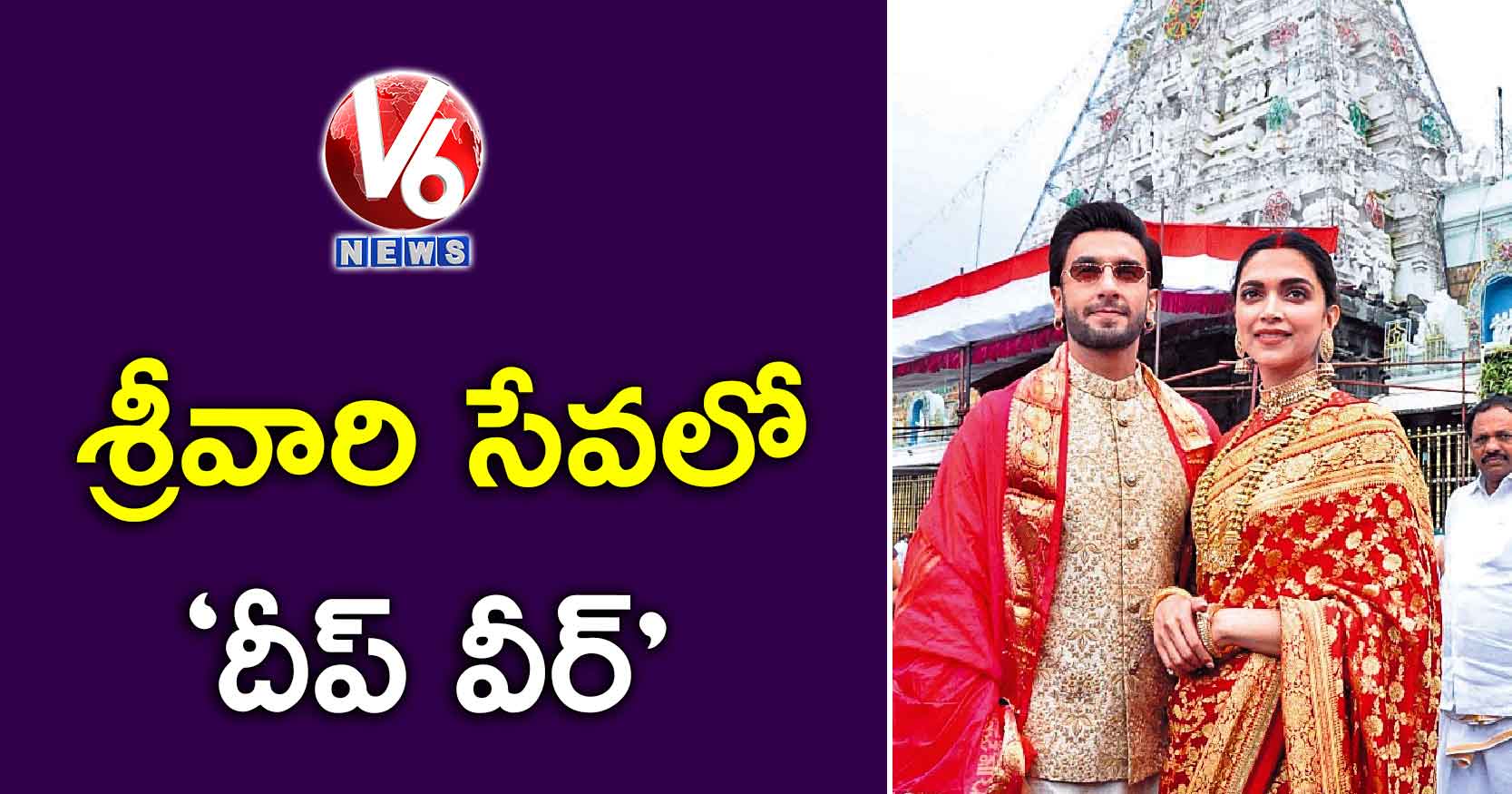 బాలీవుడ్ జంట దీపికా పదుకొనె, రణవీర్ సింగ్ పెళ్లి రోజును తిరుమల వెంకన్న సన్నిధిలో జరుపుకున్నారు. బుధవారం తిరుమలకు చేరుకున్న వీరు రాత్రి ఇక్కడే బస చేశారు. గురువారం ఉదయం కుటుంబసమేతంగా శ్రీవారిని దర్శించుకున్నారు. ఆలయ పండితులు వేదాశీర్వచనంతో ఆశీస్సులు అందజేయగా, అధికారులు పట్టువస్త్రం, తీర్థప్రసాదాలు బహూకరించారు. పలు సినిమాల్లో జంటగా నటించిన దీపికా, రణవీర్ ప్రేమించి పెళ్లి చేసుకున్నారు. గత ఏడాది ఇటలీలోని లేక్ కోమోలో కొంకణి, సింధి సంప్రదాయాల ప్రకారం వీరి పెళ్లి జరిగింది. ‑ ‑ తిరుమల, వెలుగు