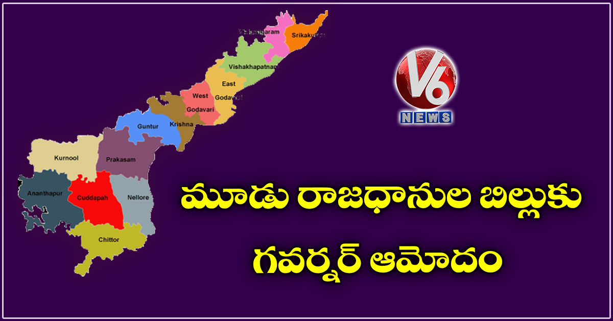 - రాజధాని వికేంద్రీకరణ, సీఆర్డీయే రద్దు బిల్లులకు గవర్నర్ ఆమోదం