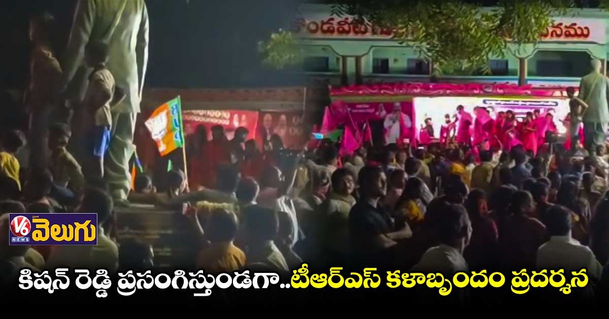 మునుగోడు ఉపఎన్నికలో భాగంగా పలివెల గ్రామంలో బీజేపీ, టీఆర్ఎస్ పోటాపోటీగా ప్రచారం నిర్వహించాయి. గ్రామంలో ఓవైపు కేంద్ర మంత్రి కిషన్ రెడ్డి ప్రచారం నిర్వహిస్తుండగా.. మరోవైపు టీఆర్ఎస్ కళాబృందాలు ప్రదర్శన నిర్వహించాయి. కిషన్ రెడ్డి మాట్లాడుతుండగా టీఆర్ఎస్ కళాబృందం పాటలు పాడారు. దీంతో అక్కడ ఉద్రిక్తత పరిస్థితి నెలకొంది. కళాప్రదర్శన ఆపాలని పోలీసులకు కిషన్ రెడ్డి చెప్పినా.. వారు పట్టించుకోలేదని బీజేపీ నేతలు ఆరోపించారు.