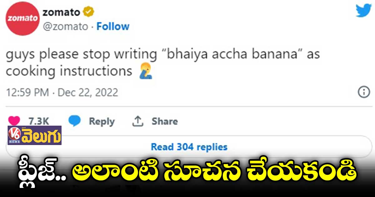 జొమాటోలో ఫుడ్ ఆర్డర్ పెట్టిన తర్వాత కుకింగ్ ఇన్స్ట్రక్షన్స్ అనే ఆప్షన్ కనిపిస్తుంది. అందులో కస్టమర్లు ఎవరికి కావాల్సిన ఇన్స్ట్రక్షన్స్ వాళ్లు ఇస్తుంటారు. అయితే, ఈ మధ్యకాలంలో ఎక్కువగా ‘భయ్యా అచ్చా బనానా’ (అన్నా ఫుడ్ బాగా వండండి) అని సూచనలు వస్తున్నాయట. దీంతో ఇలాంటి సూచనలు ఆపేయాలని కస్టమర్లను జొమాటో కోరింది. దీనిపై స్పందించిన వినియోగదారులు అవసరాలకు తగ్గట్లు సేవలు అందించాలి కానీ, ఇలా అడ్డు చెప్పడమేంటని కామెంట్లు పెడుతున్నారు.