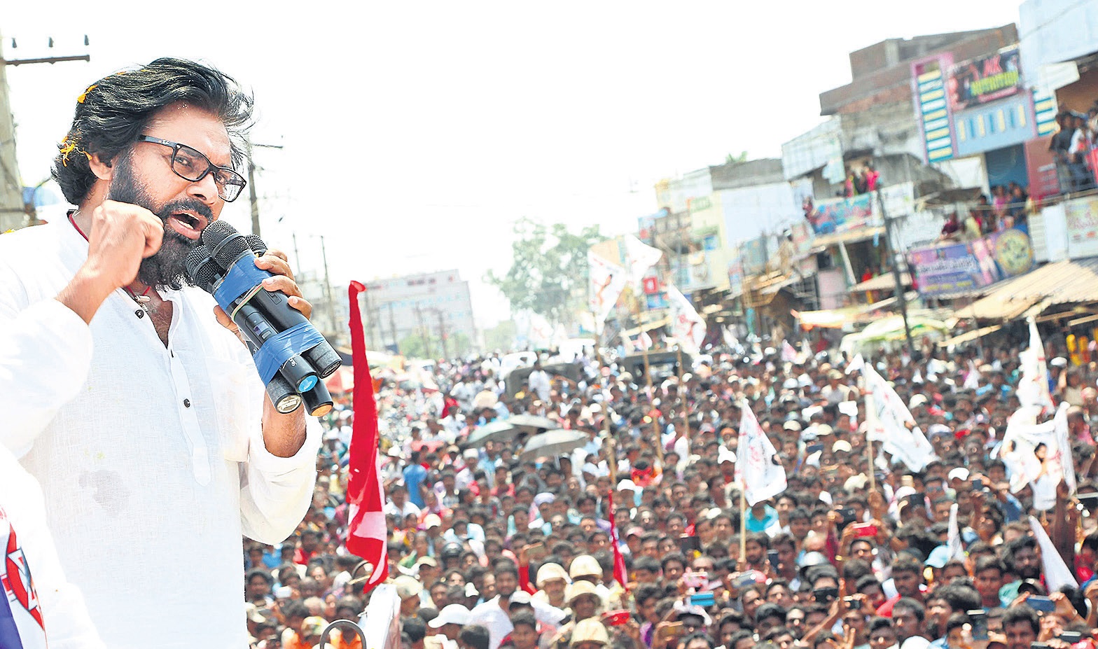 ఏపీ బడ్జెట్ రెండు లక్షల కోట్లుంటే.. 5 లక్షల కోట్ల హామీ లు ఇస్తున్నారని చంద్రబాబు, జగన్ లపై జన సేన అధినేత పవన్ కల్యాణ్ మండిపడ్డారు.జనసేన పార్టీని స్థాపించకుండా ఉంటే అధికార, ప్రతిపక్ష పార్టీలు ప్రజల్ని అడ్డంగా దోచుకునేవని, అధికారంలో ఉన్నవారు 60 శాతం, ప్రతిపక్షంలో ఉన్నవారు 40 శాతం అంటూ రాయలసీమలో మాదిరి వాటాలు వేసి పంచుకునేవారని ఆరోపించారు. ఆదివారం శ్రీకాకుళం జిల్లాలో ఎన్ని కల ప్రచారంలో ఆయన మాట్లాడారు. ” జనసేనకు ఒక్క శాతం ఓట్లు మాత్రమే వస్తాయని కేసీఆర్ అంటున్నారు. అదే నిజమైతే జనసేన అనగానే వైఎస్సార్ సీపీ అధ్యక్షుడు జగన్మోహన్ రెడ్డి ఎందుకు ఉలిక్కి పడుతున్నారు? ఉత్తరాంధ్ర లో భూములపై కొందరి కన్నుపడింది. ఎక్కడి నుంచో వచ్చి వేల ఎకరాలు కొంటున్నారు.పులివెం దుల నుం చి డబ్బు సంచులు తెచ్చి ఇక్కడ భూములు కొంటే మనకు ఉపాధి అవకాశాలు కూడారావు. పులివెందులకు వెళ్లి మనం ఒక్క ఎకరం భూమి కొనగలమా? మన భూముల్ని కొం టూ మనల్నే తొక్కేస్తుంటే ఊరుకుంటామా” అని ఆగ్రహం వ్యక్తం చేశారు. నదుల అనుసంధానం ఇప్పట్లో జరగదని, మినీ రిజర్వాయర్ల ద్వారా సాగుకు తోడ్పాటు అందిస్తామని హామీ ఇచ్చారు. సభావేదిక వద్ద మంటలు పవన్ కల్యాణ్ పాల్గొన్న ప్రచార సభలో అపశ్రుతి చోటుచేసుకుంది. సభావేదిక వద్ద షార్ట్ సర్క్యూట్తో మంటలు చెలరేగాయి. దీంతో వేదిక నుంచి దిగి వాహనంపై ఎక్కి పవన్ ప్రసంగం కొనసాగించారు. రాష్ట్రం లో జరిగిన సభలకు ఎక్కడా ఇబ్బంది కలగలేదని, శ్రీకాకుళంలో మాత్రమే తన సభలకు అడ్డుపడుతున్నారని పవన్ ఆరోపించారు.