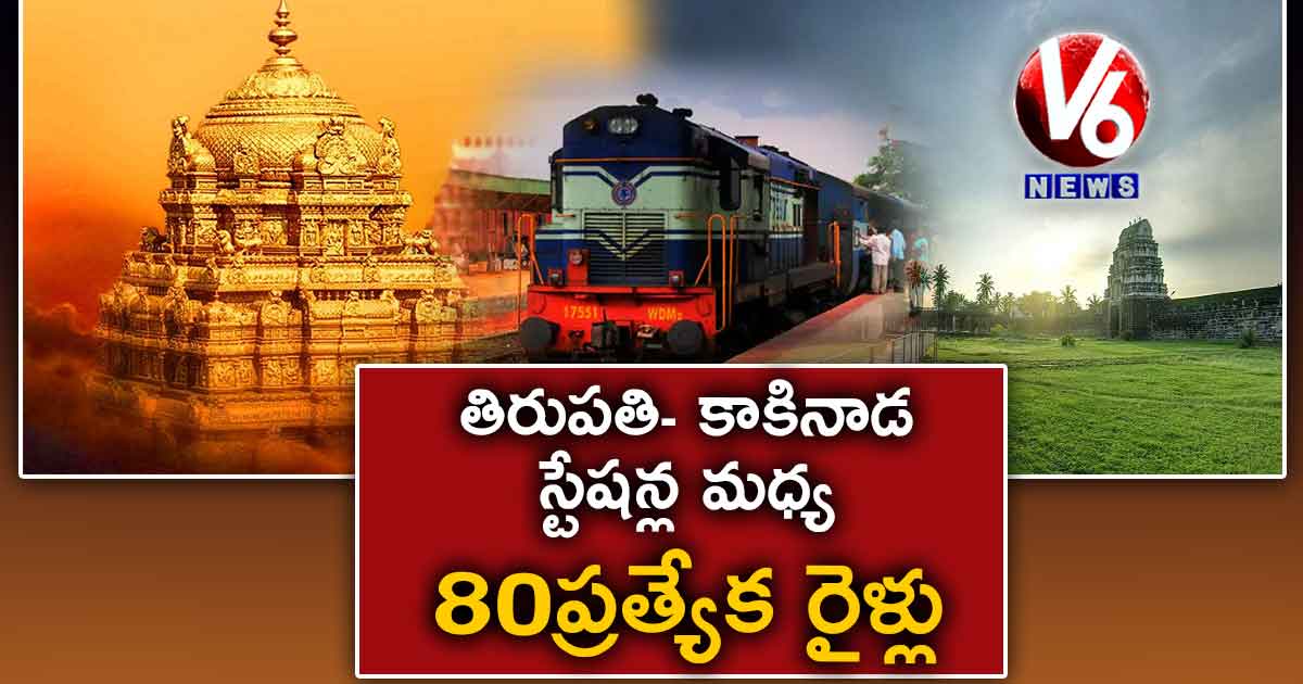 హైదరాబాద్: ప్రయాణికుల రద్దీని దృష్టిలో పెట్టుకుని తిరుపతి- కాకినాడ టౌన్ స్టేషన్ల మధ్య 80 ప్రత్యేక రైళ్లను నడపనున్నట్లు తెలిపింది సౌత్ సెంట్రల్ రైల్వే. ఈ రైళ్లు వారానికి మూడు రోజులు అందుబాటులో ఉంటాయి. ఆగస్టు 1 నుంచి నవంబర్ 1 వరకు ఈ రైళ్లు నడుస్తాయని చెప్పింది రైల్వే. తిరుపతిలో 07432 నంబరు గల రైలు ప్రతి ఆది, మంగళ, గురువారాల్లో సాయంత్రం 6.50 గంటలకు బయల్దేరి మరుసటి రోజు ఉదయం 5.30 గంటలకు కాకినాడ టౌన్ చేరుకుంటుంది.