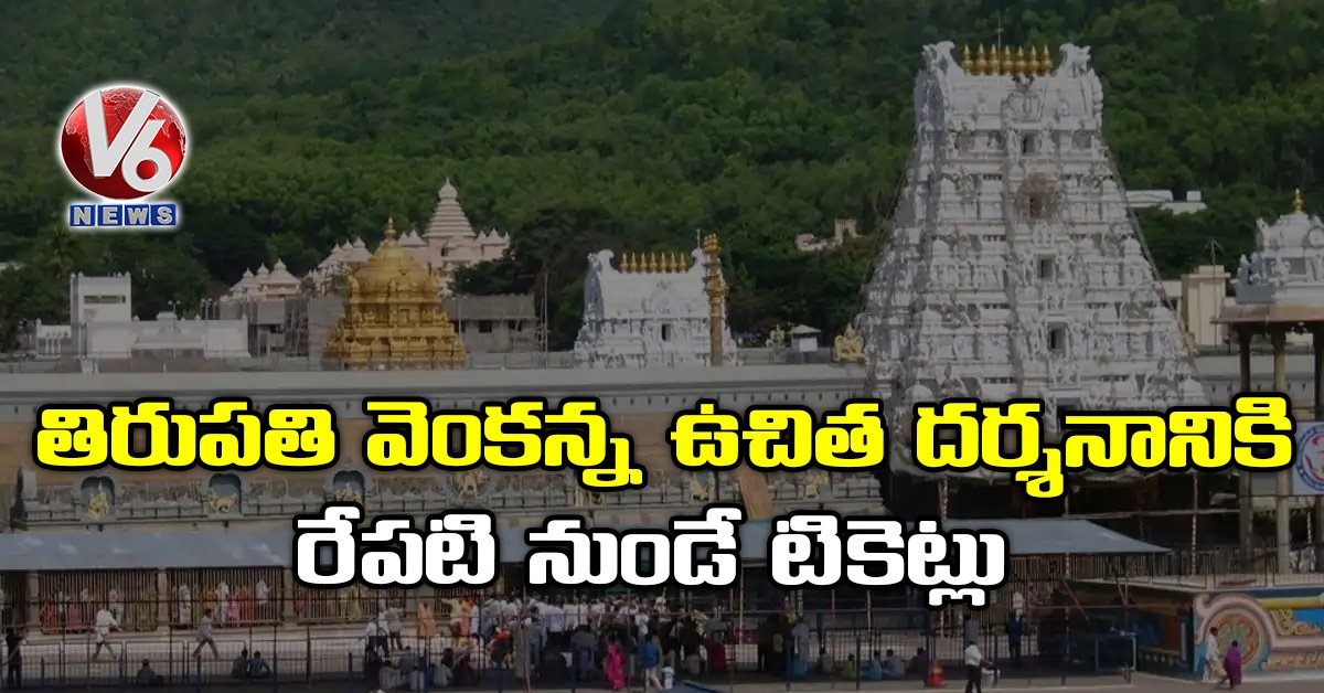 తిరుపతి: తిరుమల వెంకన్న దర్శనం కోసం ఆతృతగా ఎదురు చూస్తున్న భక్తులకు శుభ వార్త ప్రకటించింది టీటీడీ పాలక మండలి. ఈనెల 11 నుండి సామాన్య భక్తులకు అనుమతిస్తున్నట్లు ప్రకటించిన విషయం తెలిసిందే. కరోనా నిబంధనలు పాటిస్తూ.. శ్రీవారి దర్శనం చేసుకునేలా నిర్వహించిన ట్రయల్ రన్ విజయవంతం కావడంతో ఒకరోజు ముందే అంటే రేపట్నుండే టికెట్లు జారీ చేస్తున్నట్లు ప్రకటించింది. తిరుపతిలోని మూడు ప్రాంతాలలో గల 18 కౌంటర్లలో ప్రతి రోజు 3 వేల ఉచిత దర్శన టోకెన్లు ఇచ్చేందుకు ఏర్పాటు చేసింది. విష్ణు నివాసం వద్ద 8 కౌంటర్లు, శ్రీనివాసం దగ్గర 6 కౌంటర్లు, అలిపిరి వద్ద ఉన్న భూదేవి కాంప్లెక్స్ లో 4 కౌంటర్లు ఏర్పాటు చేశారు. ఉదయం 7.30 గంటల నుండి టైమ్ స్లాట్ దర్శనం టోకెన్లు ఇవ్వనున్నారు. భక్తులు స్వామి వారిని దర్శించుకునేందుకు ఒక రోజు ముందుగానే తిరుపతిలో దర్శనం టికెట్లు పొందాల్సి ఉంటుంది. భక్తులు తమకు కేటాయించిన సమయంలో మాత్రమే శ్రీవారి దర్శనానికి రావాలని టీటీడీ సూచిస్తోంది.