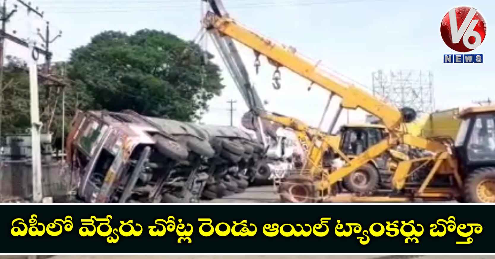విజయవాడ: రాష్ట్రంలోని వేర్వేరు ప్రాంతాల్లో.. కొన్ని గంటల తేడాలో రెండు ఆయిల్ ట్యాంకర్లు బోల్తాపడ్డాయి. రెండు చోట్లా కొద్ది తేడాలో పెను ప్రమాదం తప్పింది. ట్యాంకర్లలోని పెట్రోల్..ఆయిల్ మాత్రం రోడ్డు పాలైంది. గన్నవరం దగ్గర లీక్ అవుతున్న ట్యాంకర్ నుండి జనం పెద్ద ఎత్తున వచ్చి బకెట్లలో పెట్రోల్ నింపుకున్నారు. అగ్నిమాపక సిబ్బంది వచ్చి రెండు చోట్ల ప్రమాదం జరగకుండా ముందస్తు చర్యలు చేపట్టారు. కృష్ణా జిల్లా ఉంగటూరు మండలం ఆత్కూరు గ్రామం వద్ద గన్నవరం జాతీయ రహదారిపై ఆయిల్ ట్యాంకర్ బోల్తా పడింది. కరెంటు ట్రాన్స్ ఫార్మర్ కు అతి సమీపంలో ట్యాంకర్ బోల్తాపడడం స్థానికులను ఒకింత భయాందోళనకు గురిచేసింది. అయితే ప్రమాదం ఏమీ లేకపోవడంతో ఊపిరి పీల్చుకున్నారు. అయితే ఒరిగిపోయిన ట్యాంకర్ మూతల నుండి పెట్రలో కారిపోతుండడం గుర్తించిన స్థానికులు.. బాటిళ్లు.. బకెట్లు.. బిందెలుతీసుకొచ్చి మరీ పెట్రోల్ నింపుకున్నారు. పెట్రోల్ పట్టుకునేందుకు వస్తున్న జనం. సమాచారం అందుకున్న పోలీసులు ఫైర్ సిబ్బందిని రప్పించి ముందస్తు చర్యలు చేపట్టారు. ట్యాంకర్ ను క్రేన్ల సహాయంతో పైకి లేపి కూర్చోబెట్టే పనులు ప్రారంభించారు.