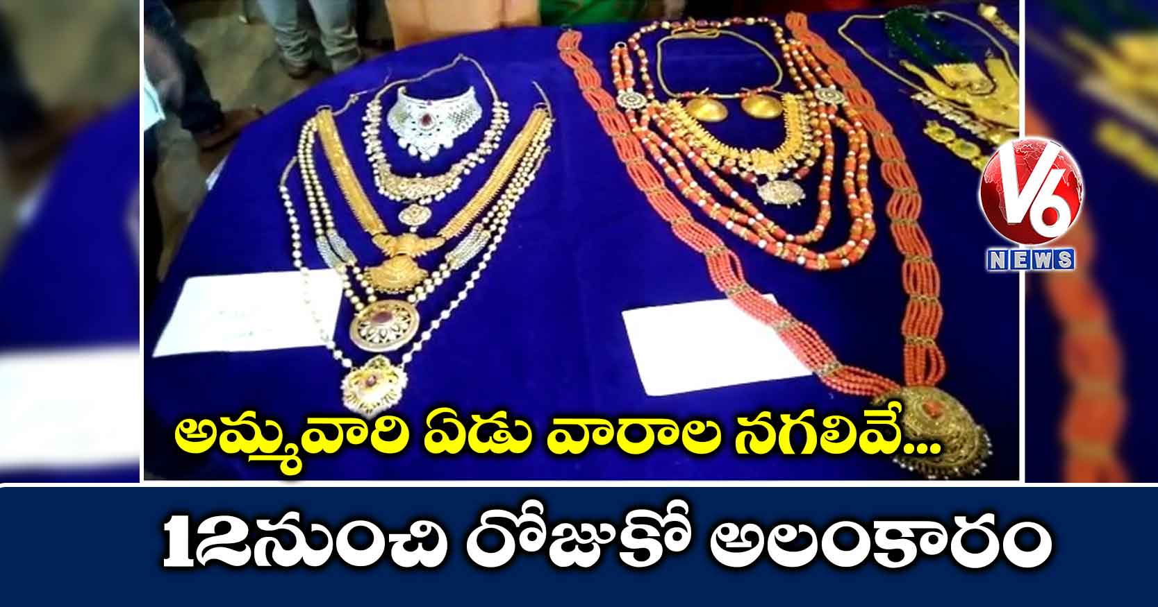 ఈ నెల 12 వ తేదీ నుంచి ఇంద్రకీలాద్రి పై అమ్మవారిని ఏడువారాల నగలతో అలంకరించనున్నామని దుర్గగుడి ఈవో ఎంవి.సురేష్ బాబు అన్నారు. ఒక్కో రోజు ఒక్కో రకమైన నగలతో అలంకరణ జరుగుతుందని చెప్పారు. సోమవారము- ముత్యాలు, మంగళవారము- పగడాలు, బుధవారము- పచ్చలు, గురువారము- పుష్యరాగాలు, శుక్రవారము- వజ్రాలు, శనివారము- నీలాలు, ఆదివారము – కెంపులు మరియు పౌర్ణమి రోజున బంగారు కవచం కలిగిన నగలతో అమ్మవారి అలంకరణ జరుగుతుందని తెలిపారు.