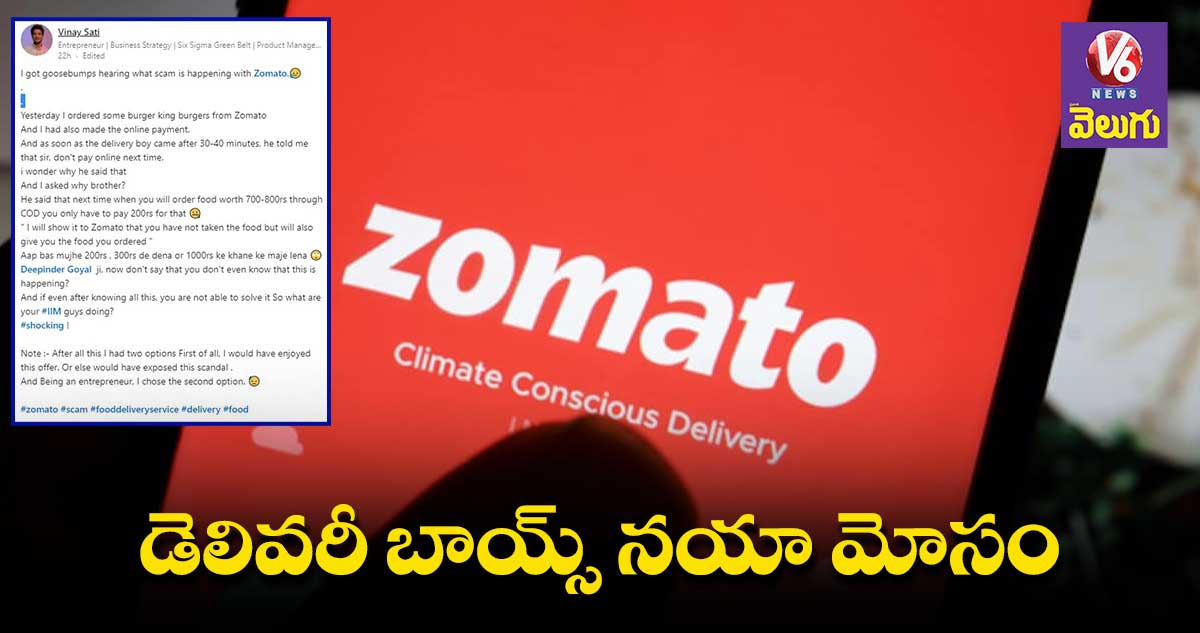 పాపులర్ ఫుడ్ డెలివరీ యాప్ జొమాటోలో జరుగుతున్న స్కాంపై కంపెనీ ఫౌండర్ దీపేందర్ గోయెల్ సీరియస్ అయ్యారు. పేమెంట్ విషయంలో డెలివరీ బాయ్స్ చేస్తున్న మోసాన్ని తెలుసుకుని అవాక్కయ్యారు. వారు అలా చేసేందుకు అవకాశమిస్తున్న లోపాలను సరిదిద్దుతామని హామీ ఇచ్చారు. ఇంతకీ దీపేందర్ సీరియస్ కావడానికి కారణమేంటన్న అన్న విషయానికొస్తే.. జొమాటోలో ఫుడ్ ఆర్డర్ చేస్తే డెలివరీ బాయ్ కి కమిషన్ వస్తుంది. అదే కస్టమర్ కొంచెం దయ చూపితే.. ఆ కమిషన్ ఇంకొంచెం పెరుగుతుంది. కానీ పనిచేసే సంస్థకే టోకరా వేయాలని చూస్తే..? ఇదే ఐడియాతో కొంతమంది డెలివరీ బాయ్స్ పనిచేస్తున్నట్టు తాజాగా ఆ కంపెనీ యజమాని గుర్తించారు. జొమాటోలో జరుగుతున్న మోసం గురించి వినయ్ సాథి అనే కస్టమర్ లింక్డ్ ఇన్ లో పోస్ట్ చేశారు. తనకు ఈ లూప్స్ తెలియగానే గూస్ బంప్స్ వచ్చాయని.. ఆ కస్టమర్ చెప్పుకొచ్చారు. అదెలా అన్న విషయాన్ని కూడా అతను వివరించాడు.